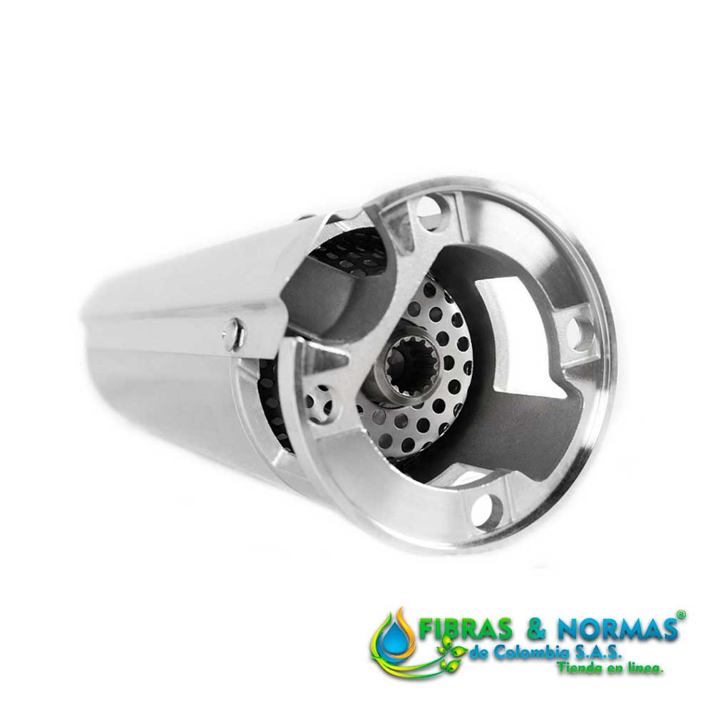 Bomba en acero inoxidable con impulsores en Noryl y difusores en Lexan, gracias a las propiedades de estos materiales obtenemos un equipo de gran durabilidad y calidad.